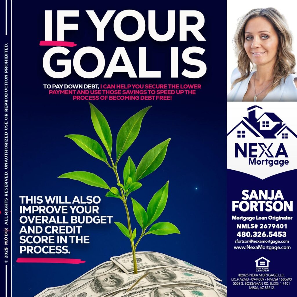 Hi, my name is Sanja Fortson. I’m a Loan Officer with NEXA Mortgage LLC., offering personalized mortgage solutions, fast customized quotes, great rates and service with integrity.
